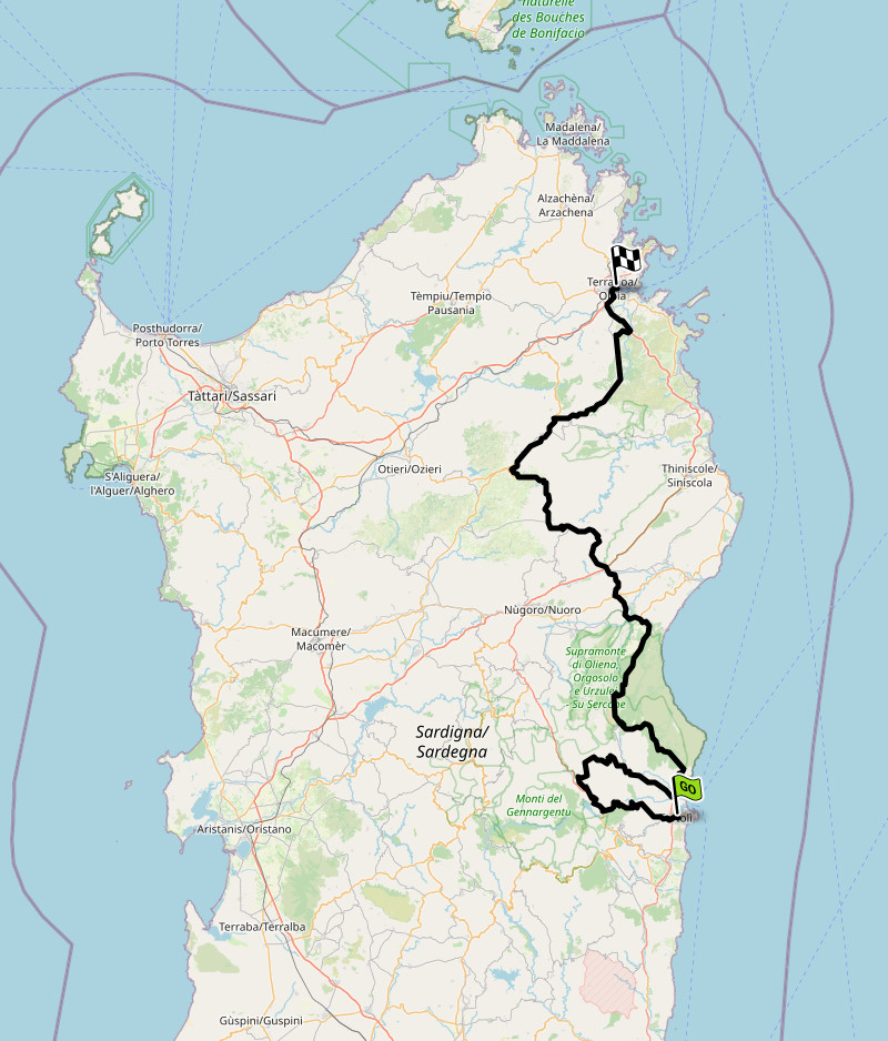 Heute gehts auf die berühmt- berüchtigte SS 125, Bikers Playground. Von Tortoli übers Gebirge Richtung Norden führt diese geniale Motorradstrecke mit vielen Kurven. Besonders hier verfestigt sich das Gefühl, dass Verkehrszeichen auf der ganzen Insel eher als Dekoration, bestenfalls Empfehlungen gesehen werden.